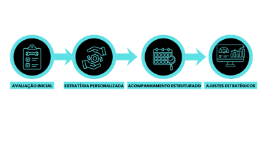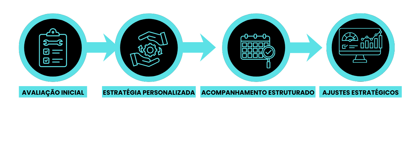 Acompanhamento contínuo para avaliar evolução e realizar ajustes estratégicos na dieta.